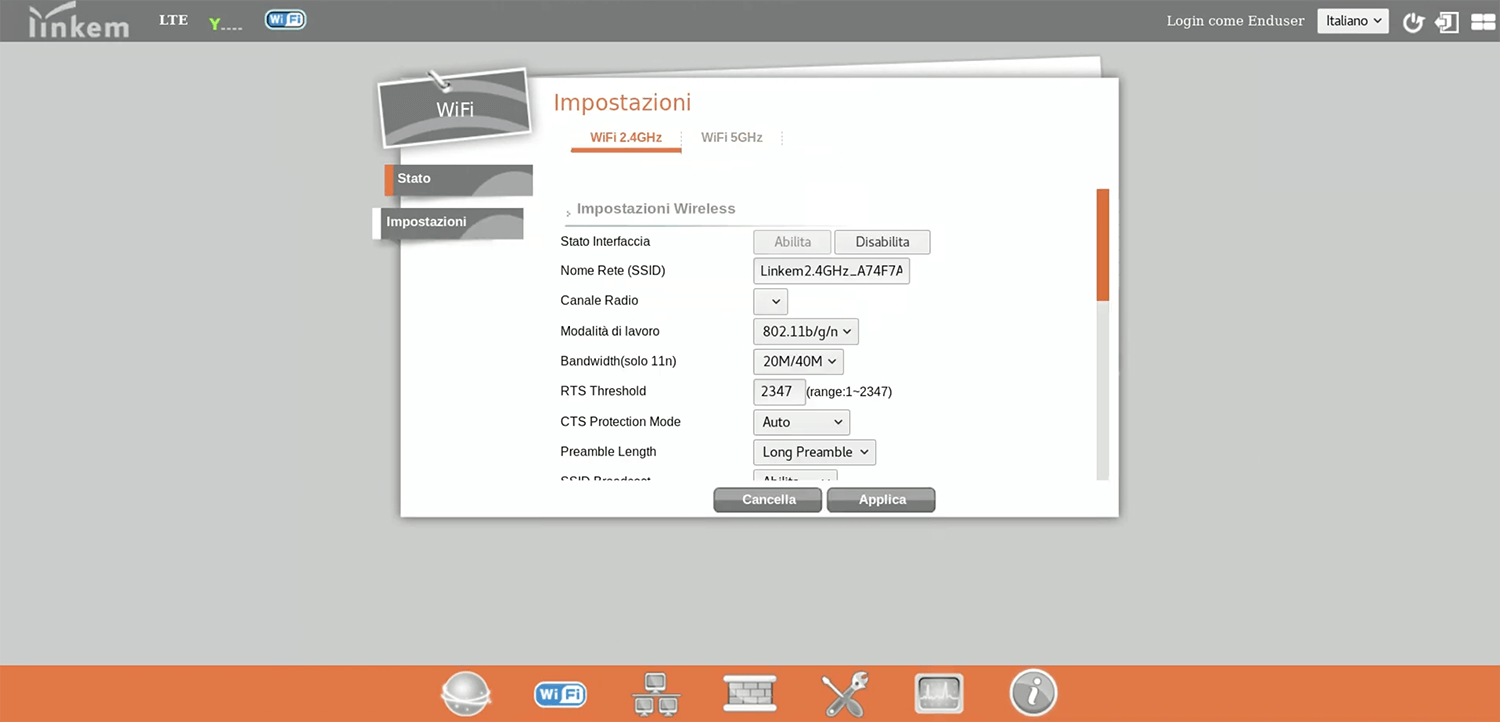 - You will be logged in to the Linkem modem settings.