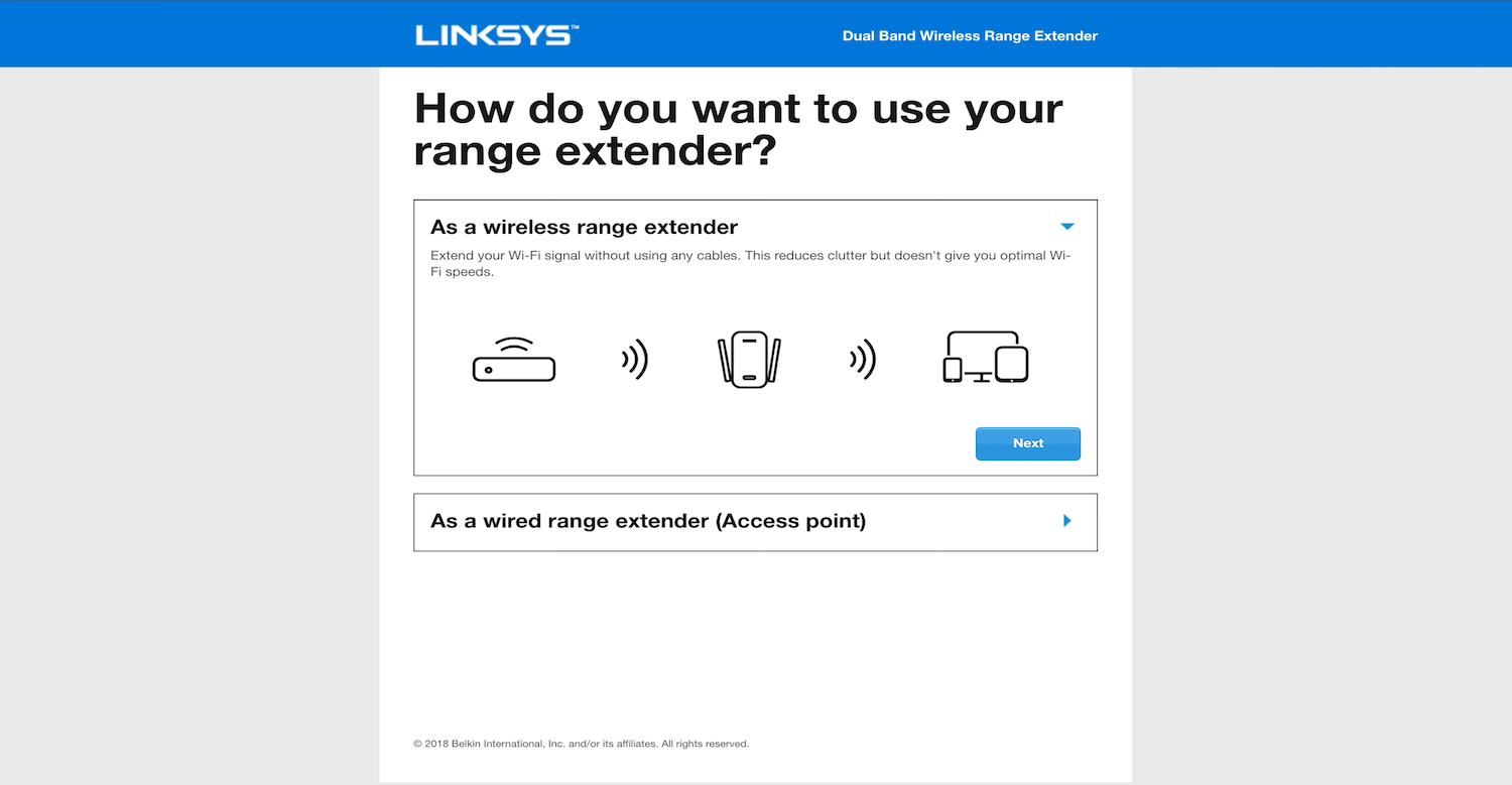 - The Linksys Extender Setup page will appear.