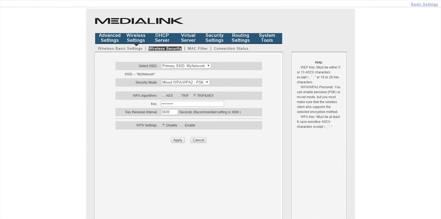 - Enter the Wi-Fi Password in the Key field and click Apply.