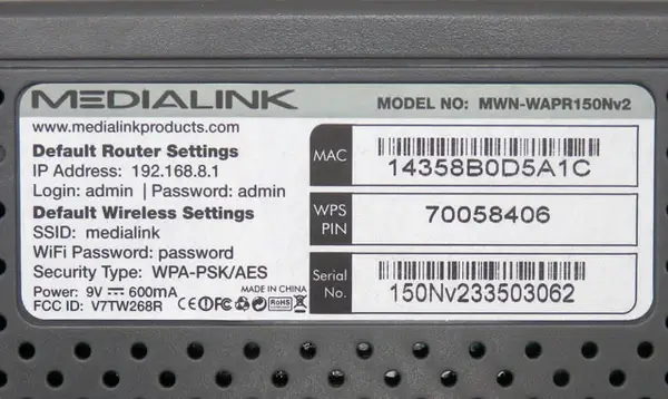 Medialink web-based configuration interface allows you to change Wi-Fi password, Network Name (SSID), and default router settings at http://192.168.8.1.