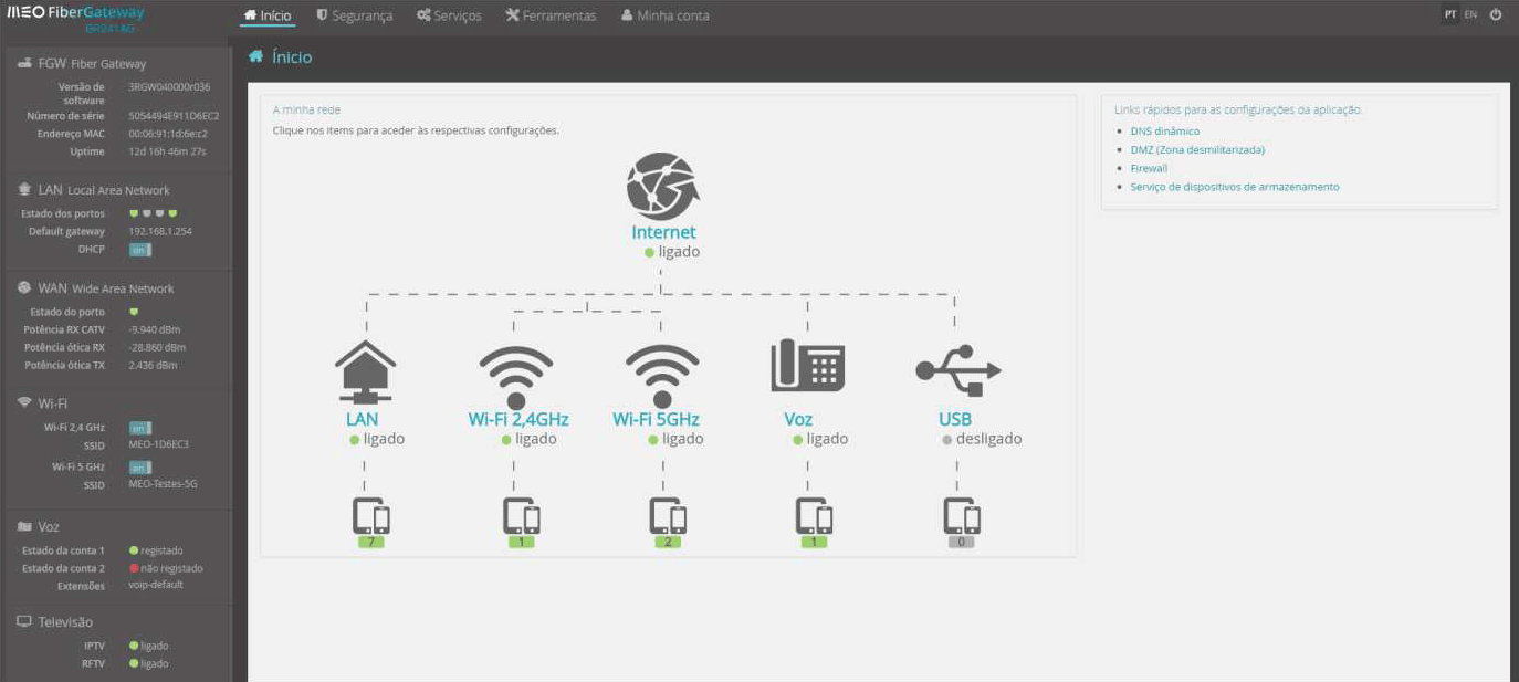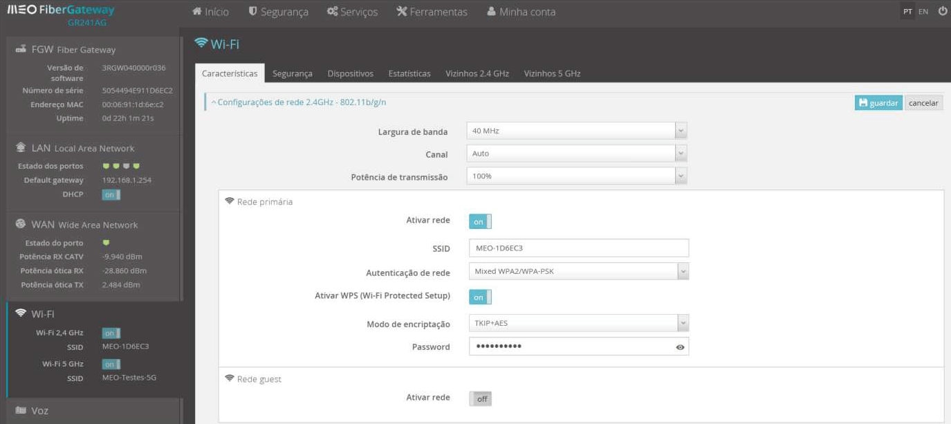 MEO web-based configuration interface allows you to change Wi-Fi password, Network Name (SSID), and default router settings.