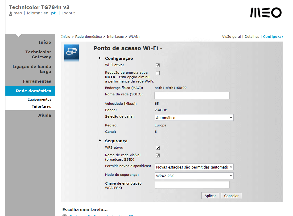 Username Password meo meo sumeo bfd,10ng - Under Rede doméstica, click Wireless.