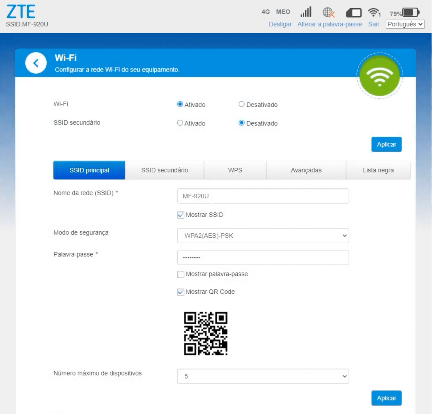 - Enter the Wi-Fi Password in the Palavra-passe field.
