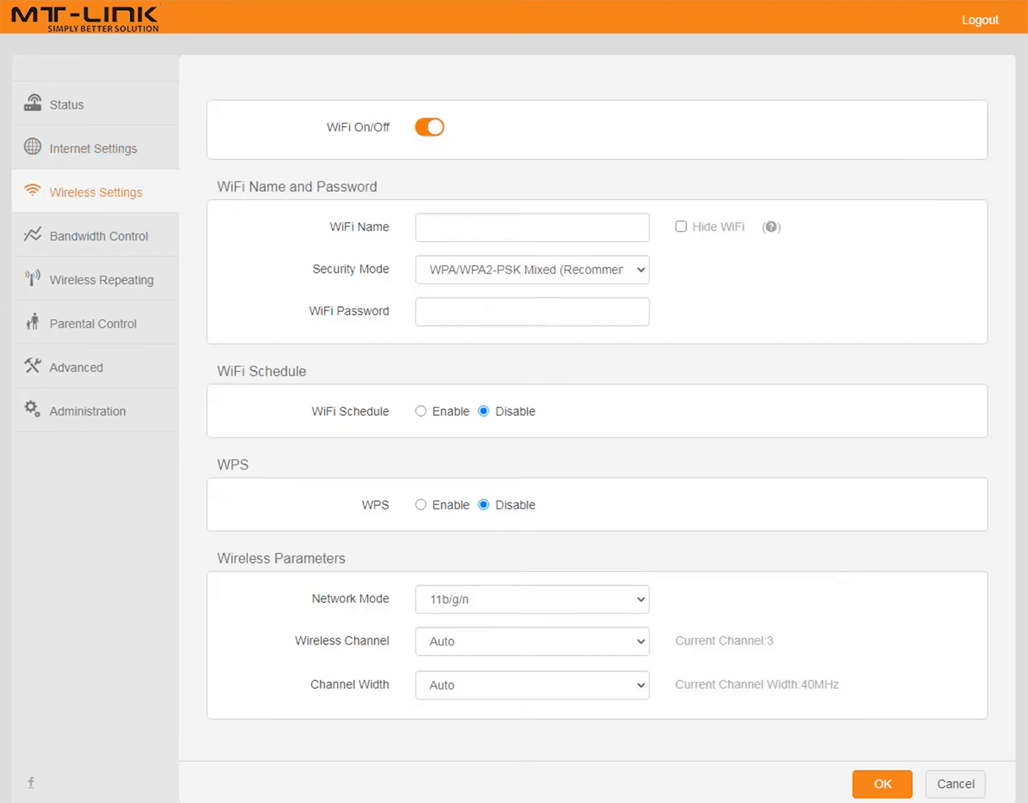 MT-Link web-based configuration page allows you to change WiFi password, Network Name (SSID), and default MT-Link router settings at http://192.168.0.1.