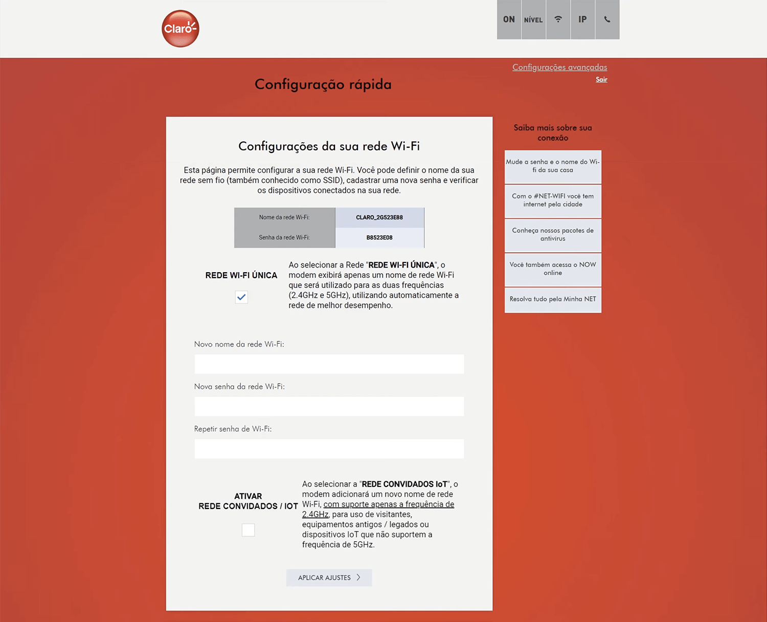 - Enter the Wi-Fi Password in the Nova senha da rede Wi-Fi field.