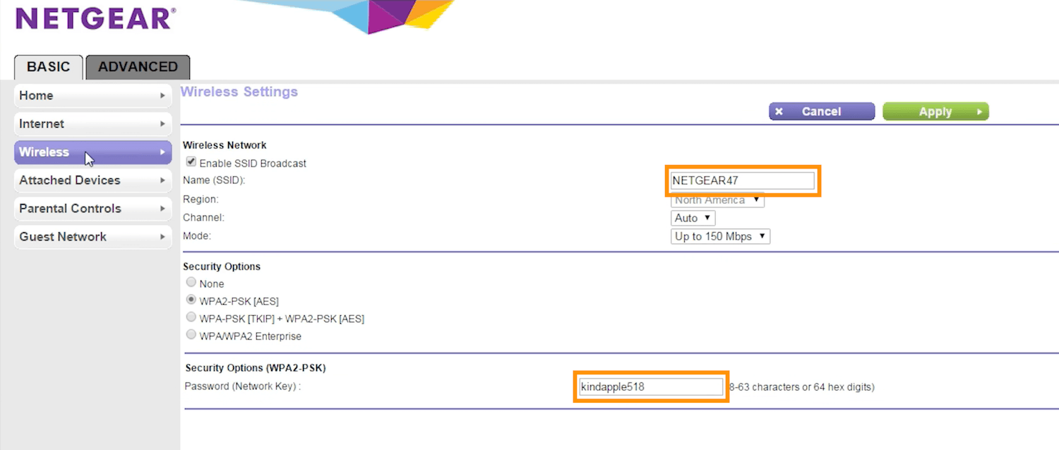 - In the Wireless tab, enter Wireless Network Name (SSID) in the field.