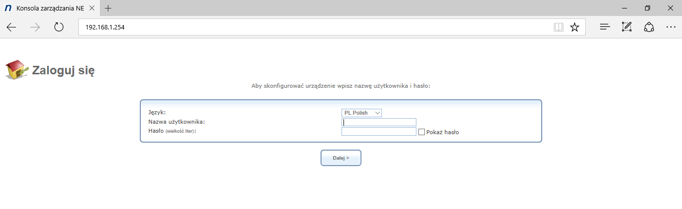 - Open a browser and type http://netiaspot.home or http://192.168.1.254 in the address bar.