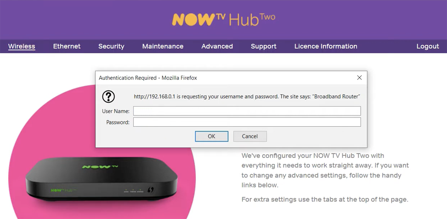 How to login to NOW TV router?