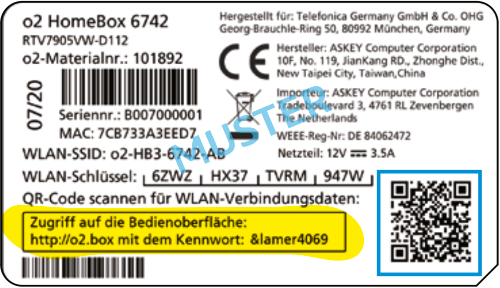 Note: The Password is printed on a label on the back of your o2 HomeBox device.