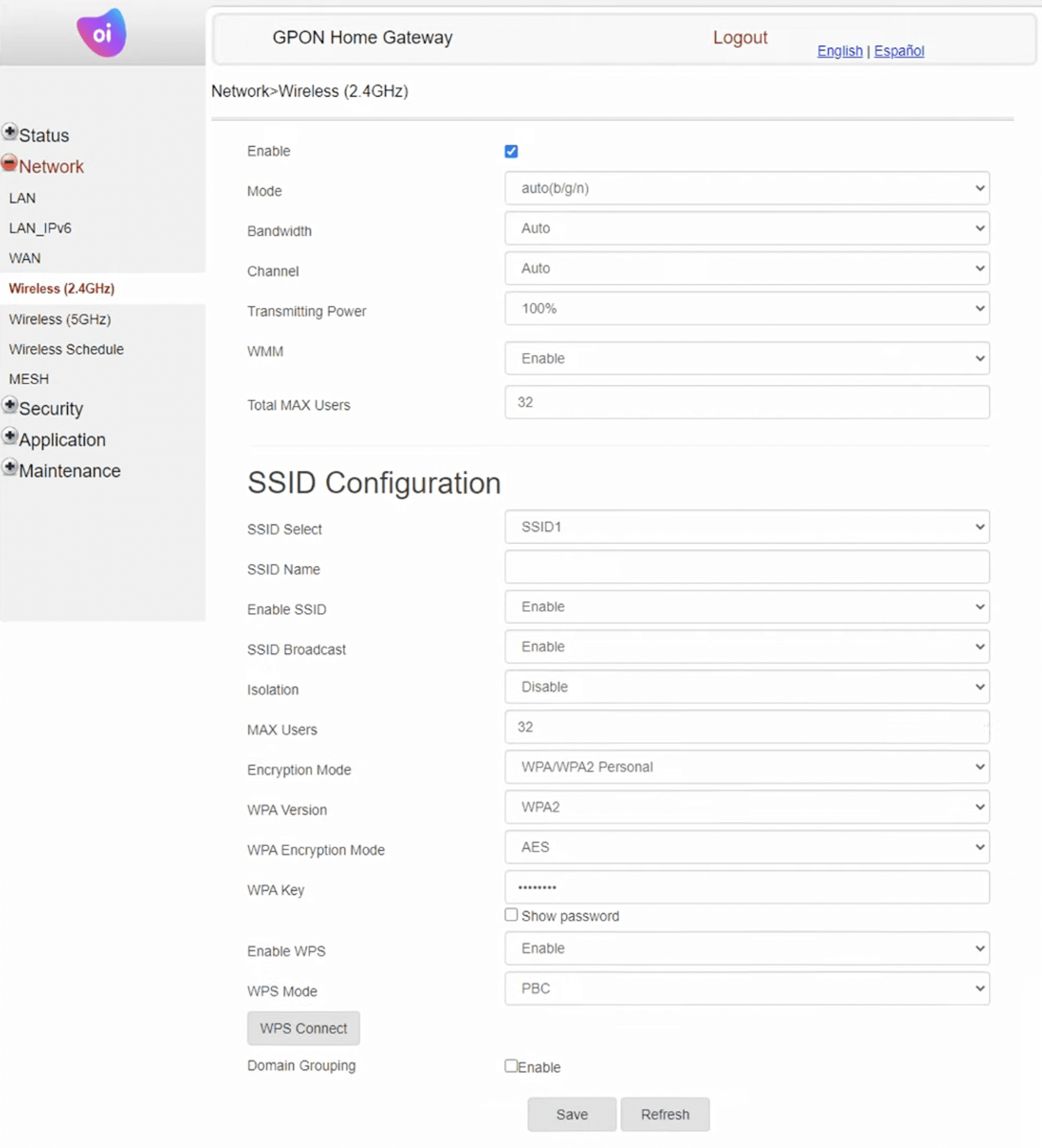 - Select Network > Wireless (2.4GHz).