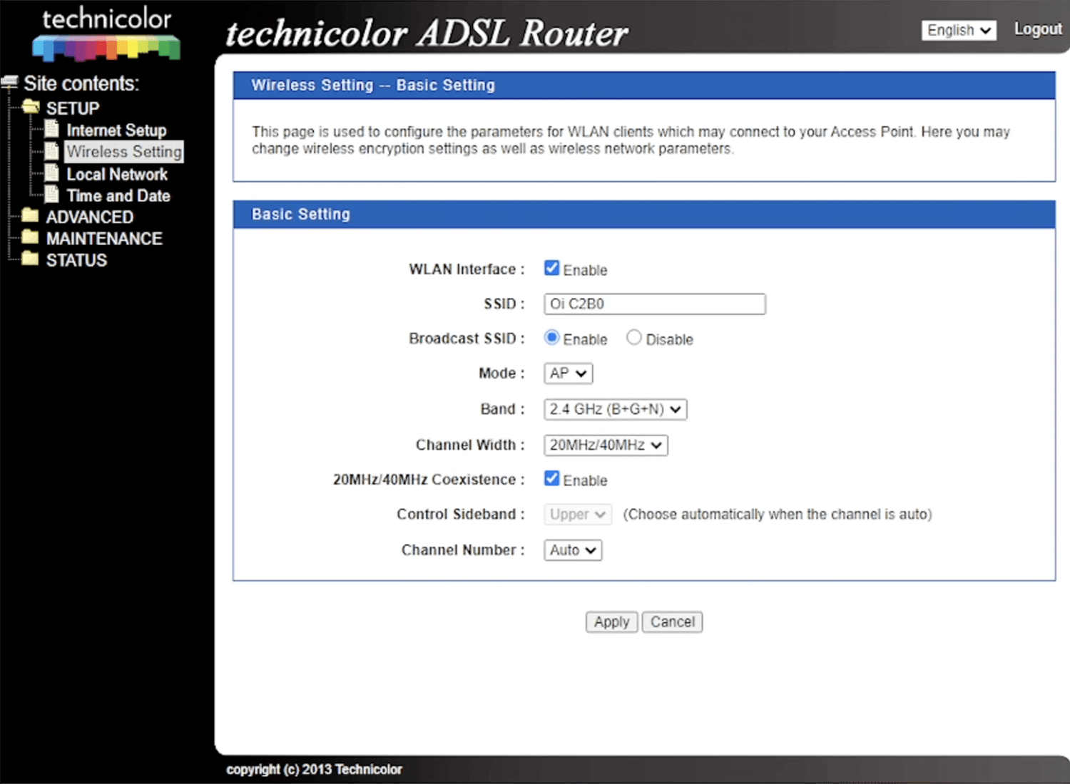 - Select SETUP > Wireless Setting > Basic Setting.