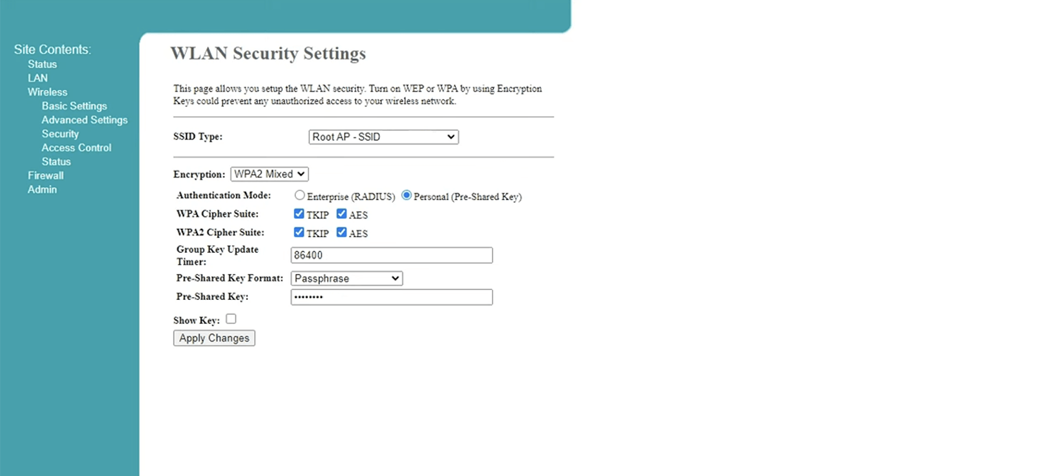 4. Select Wireless > Security.