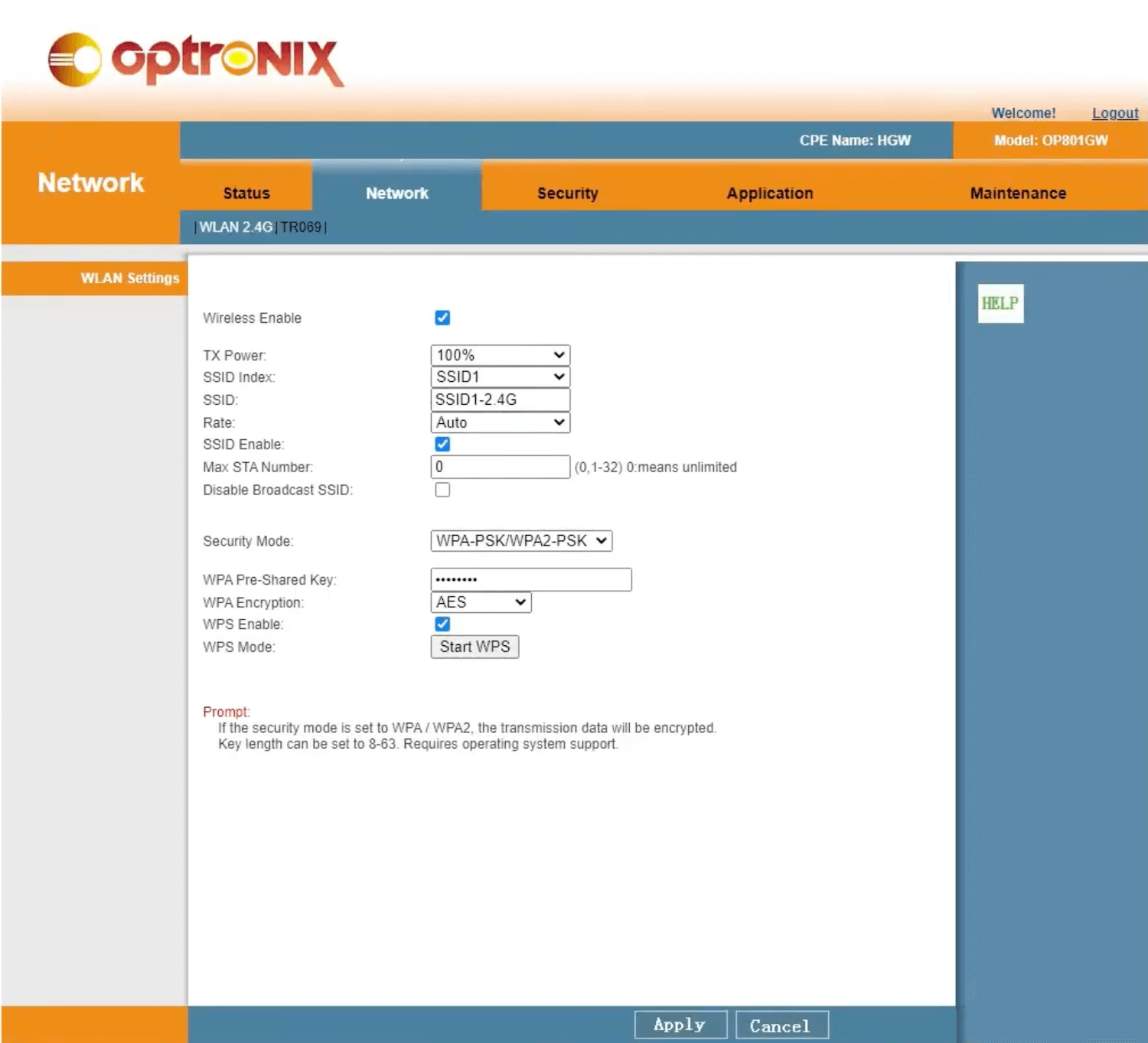 - Enter the Wi-Fi Password in the WPA Pre-Shared Key field.
