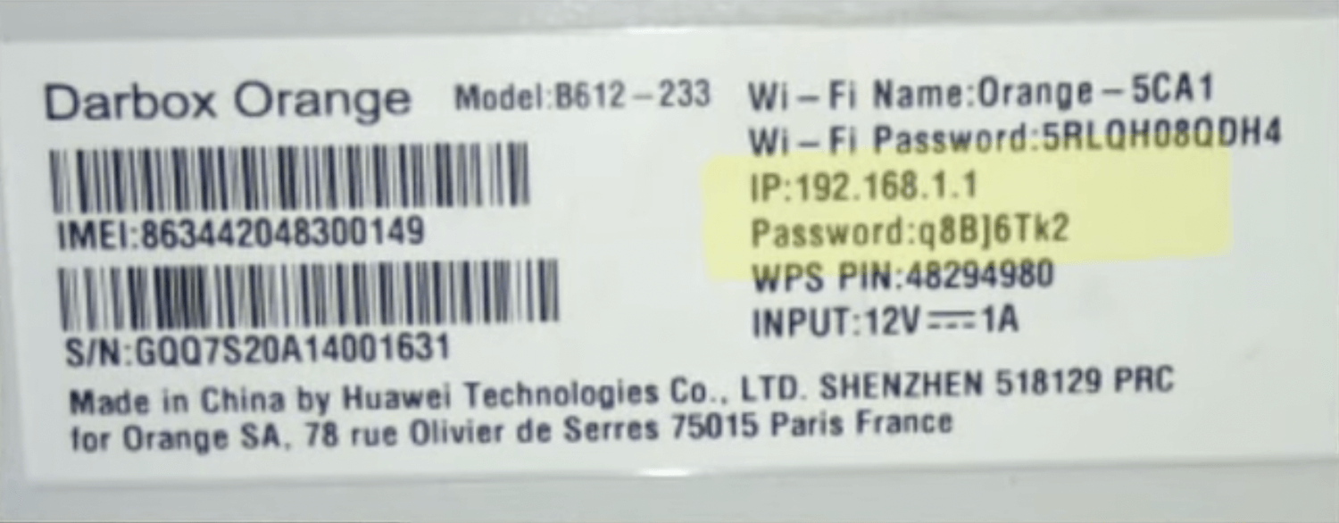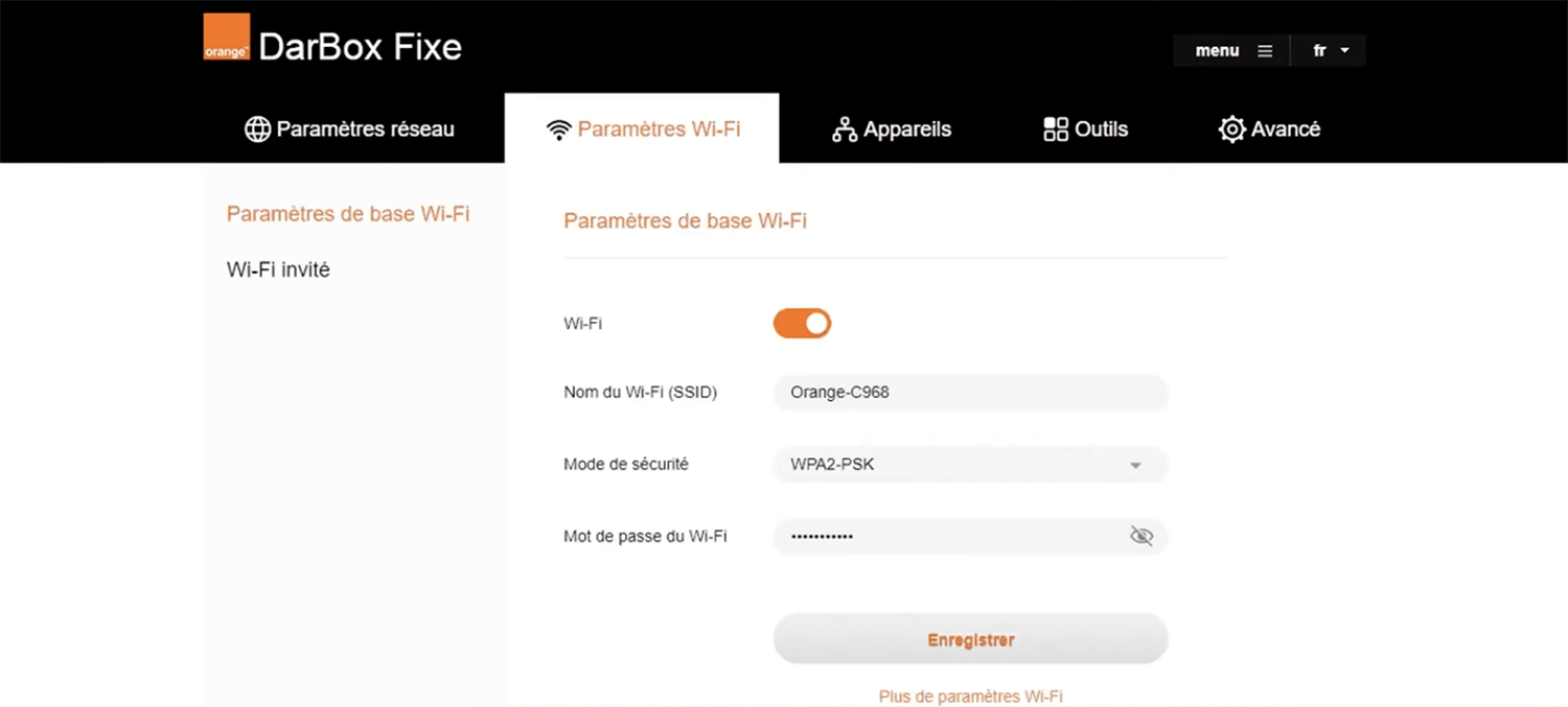 Orange DarBox administrator interface allows you to change WiFi password, Network Name (SSID), and default modem settings at http://192.168.1.1.