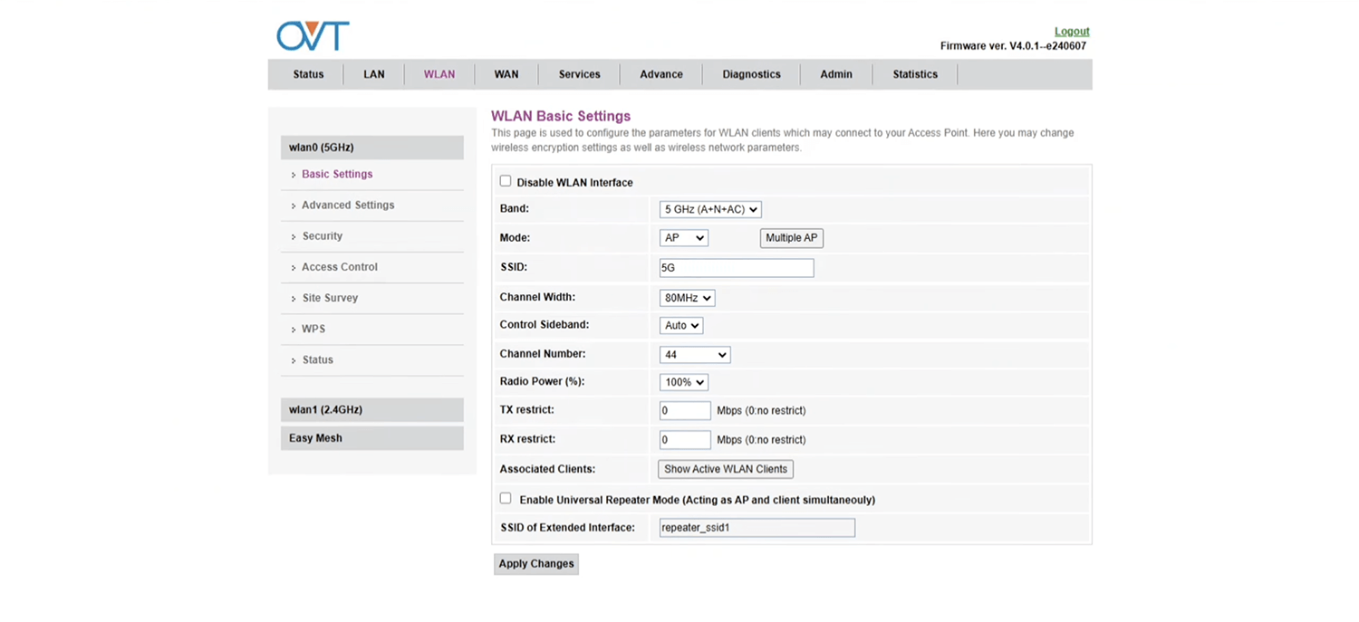 - You will be logged in to the OVT router settings.