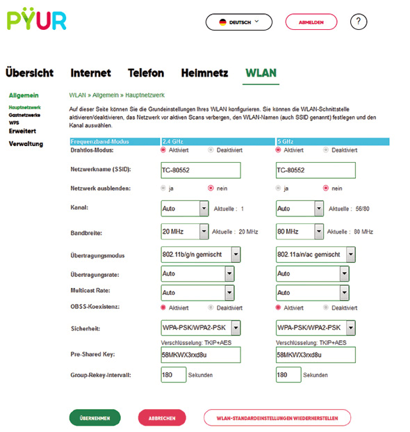| PŸUR WLAN-Kabelbox | http://192.168.0.1 | admin | tc |