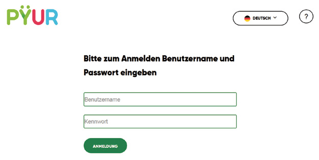 PYUR web user interface allows you to change Wi-Fi password, Network Name (SSID), and default router settings at http://192.168.0.1 or http://fritz.box.