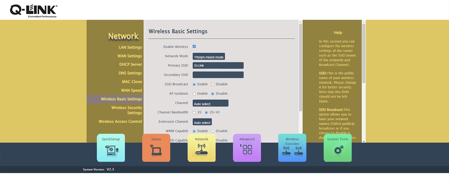 Q-Link web-based user interface allows you to change Wi-Fi password, Network Name (SSID), and default router settings at http://192.168.0.1.