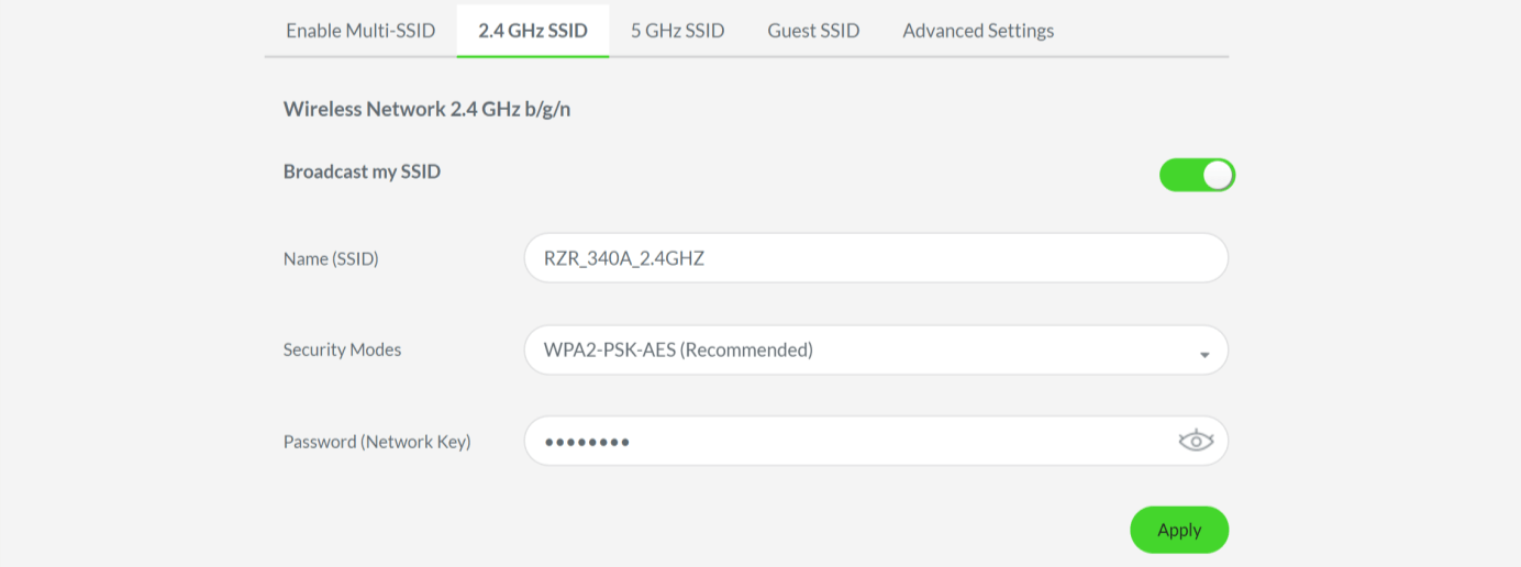 - Select Wireless Configuration > 2.4 GHz SSID or 5 GHz SSID.