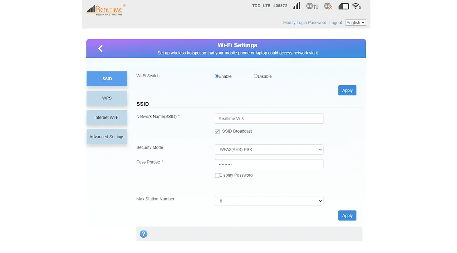 - Enter the Wi-Fi Password in the Pass Phrase field.