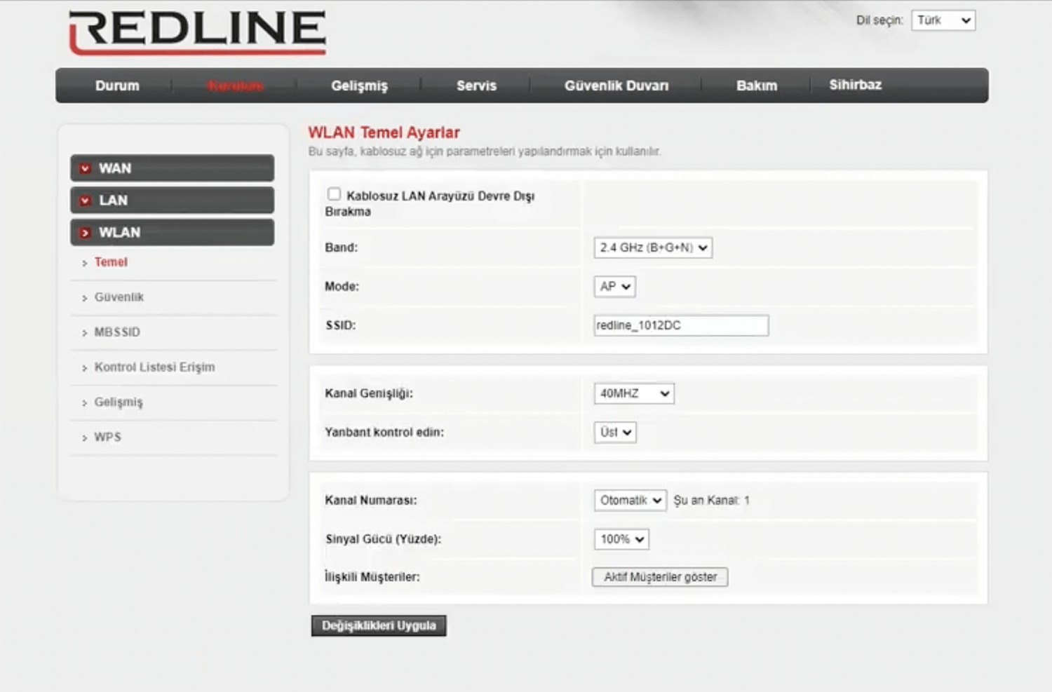 - Enter the Wi-Fi Network Name in the SSID field and click Değişiklikleri Uygula.