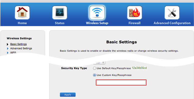 - Enter the Wi-Fi Password in the Use custom Wireless Network Key field.