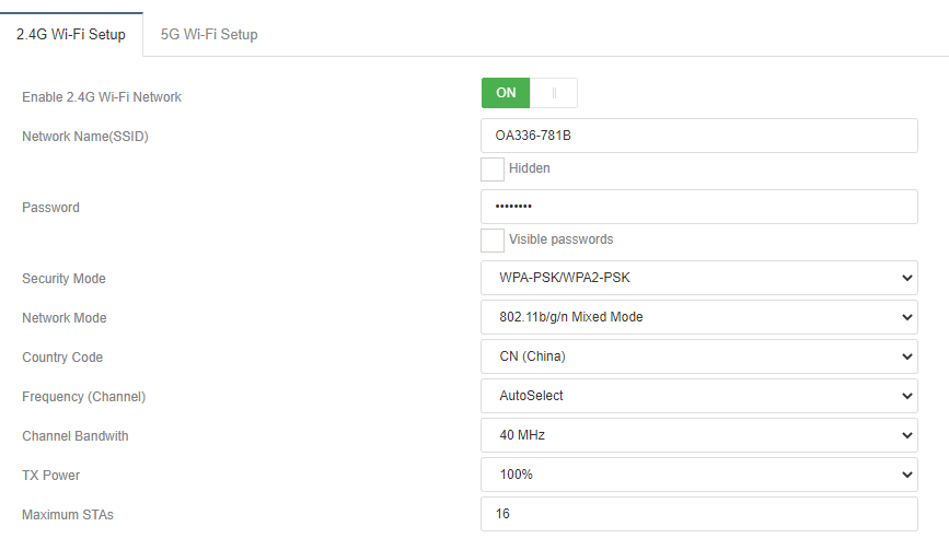 - Select Setting > Network Settings > 2.4G Wi-Fi Setup.