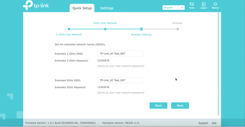 8. You will now be asked to set the extended network settings i.e Extended Network SSID and Password.