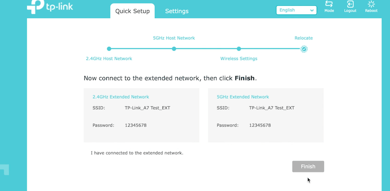 10. Click on “I have connected to the extended network.” and then click on Finish.