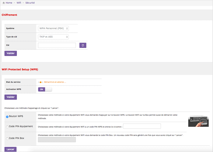 - Enter the Wi-Fi Password in the Clé field and click Valider.