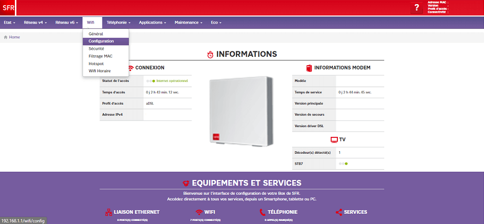 - You will be logged in to the SFR box interface.