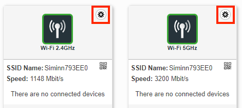- Select the cog icon on the Wi-Fi 2.4GHz or Wi-Fi 5GHz section.