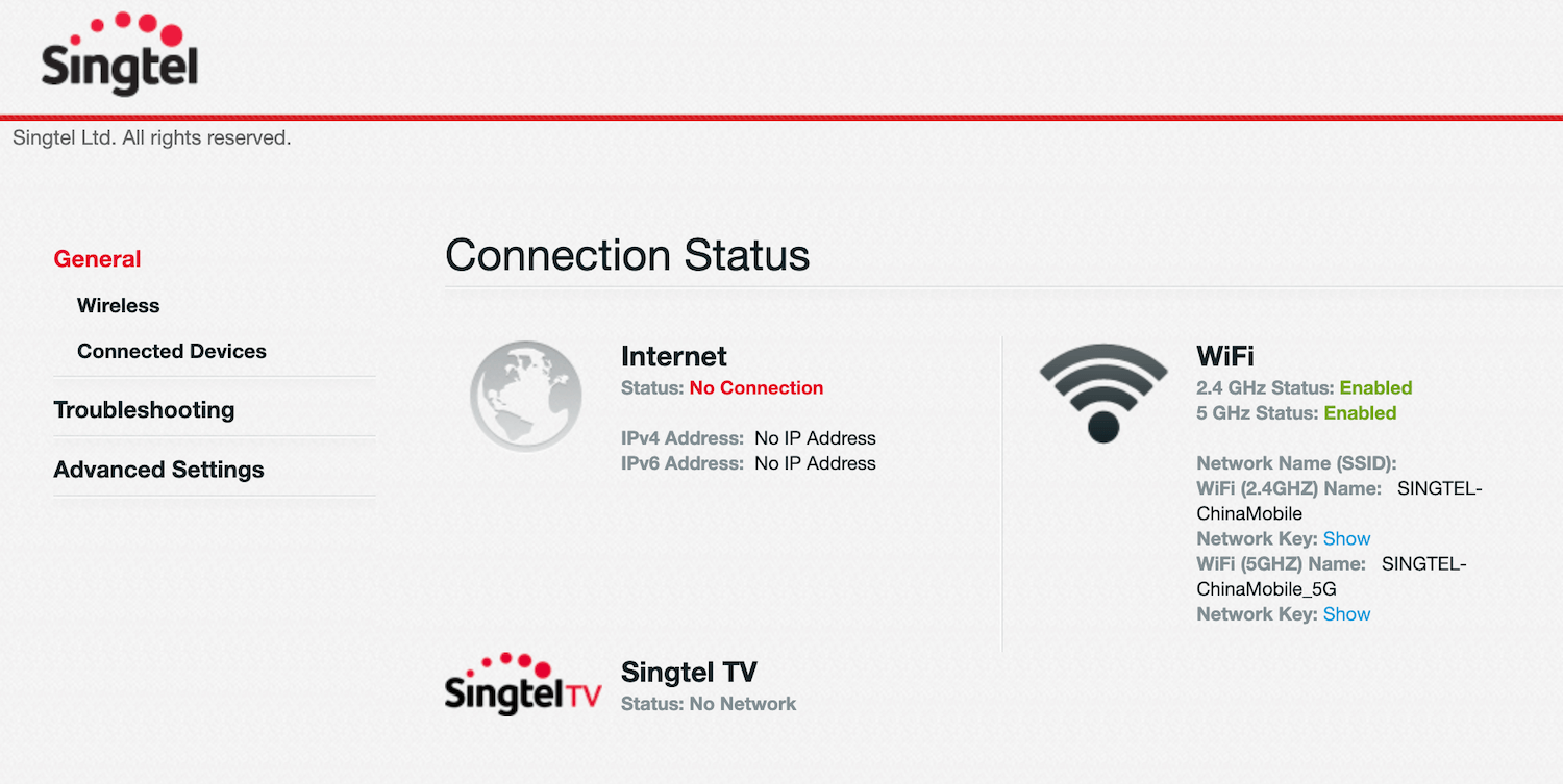 - You will be logged in to Singtel’s admin page.
