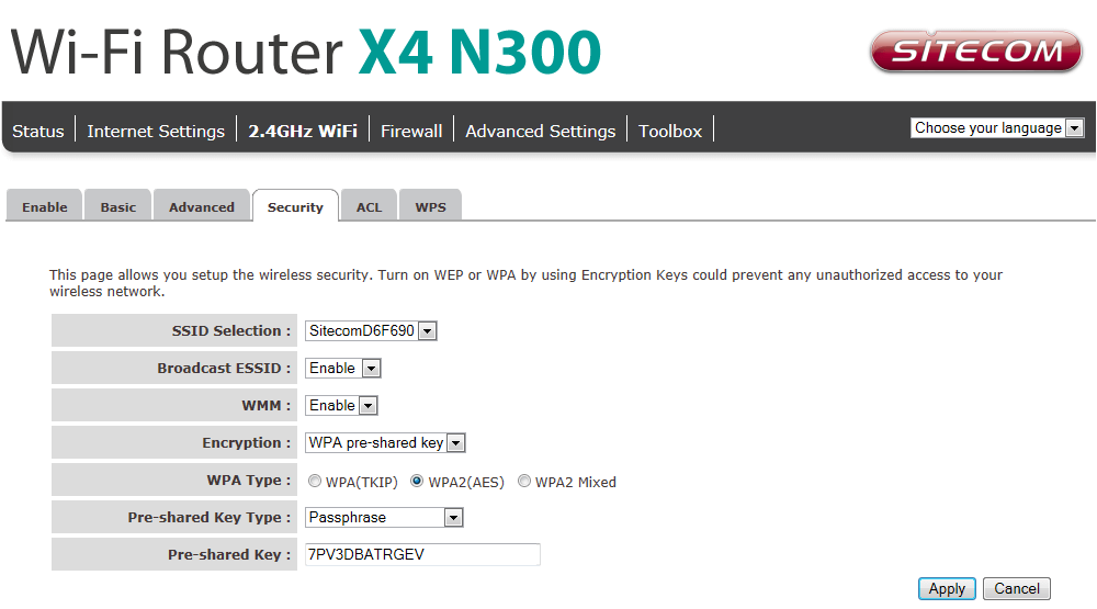 5. Enter the Wi-Fi Password in the Pre-shared Key field and click Apply.