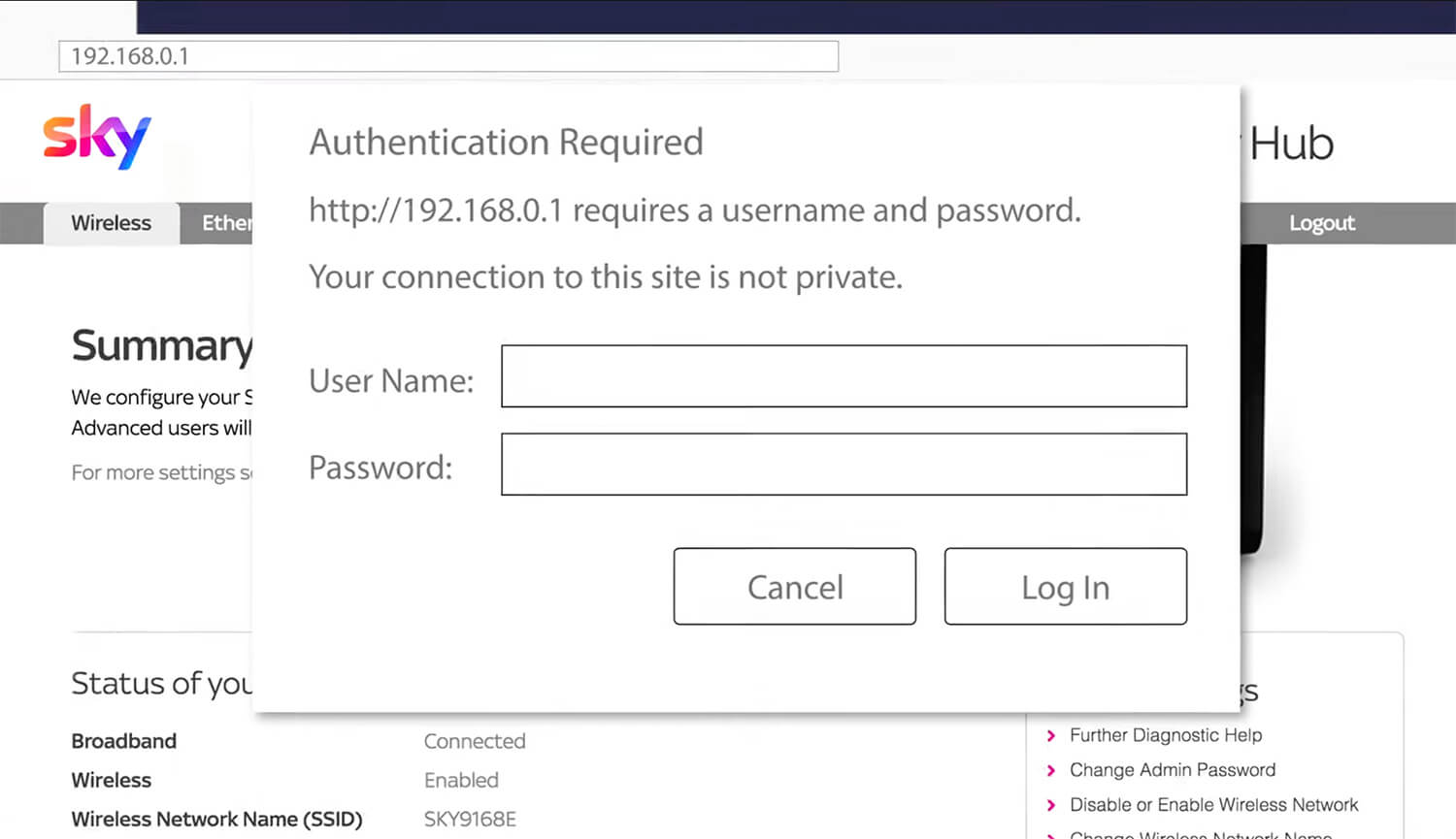 - You will be logged in to your Sky Hub Wireless Settings page.