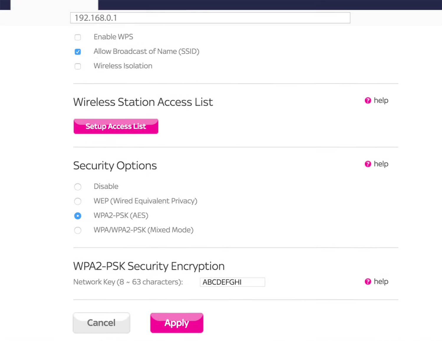 - Go to Wireless Network and enter WiFi Network Name in the Name (SSID) field.