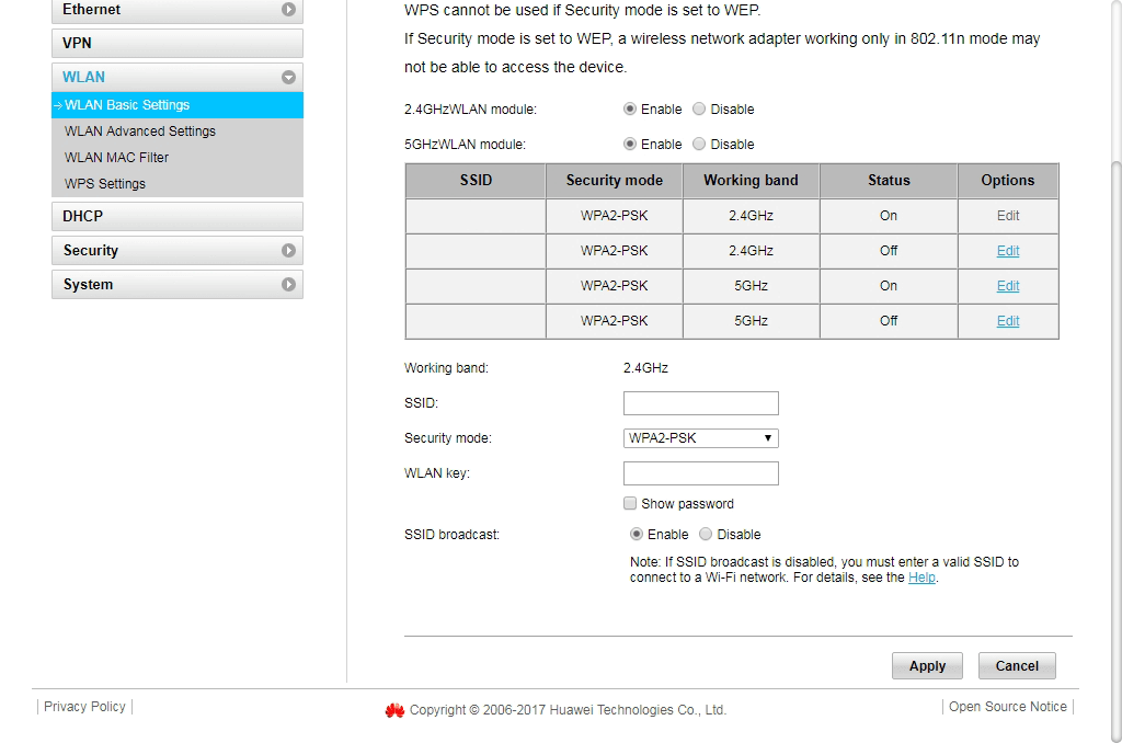 - Click WLAN > WLAN Basic Settings.