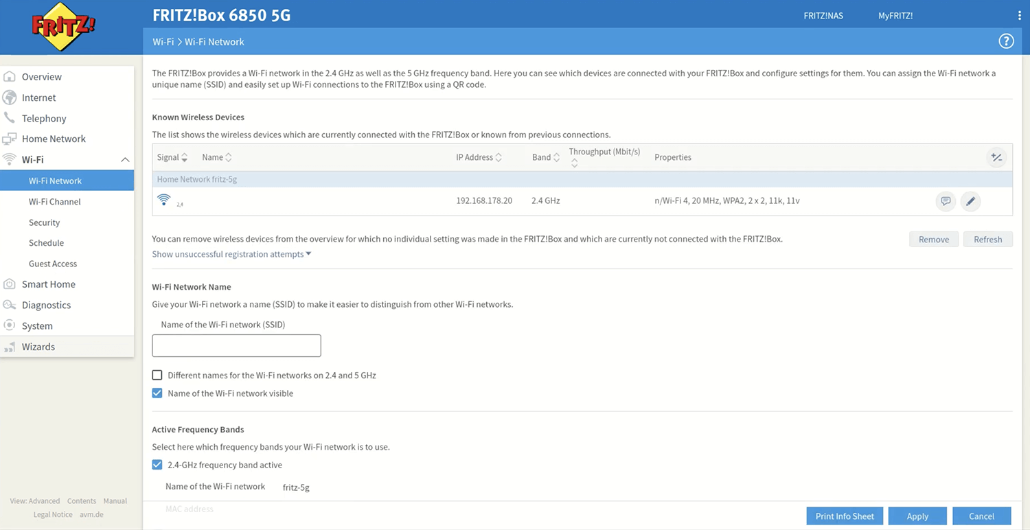 - Enter the Wi-Fi Network Name in the Name of the Wi-Fi network (SSID) field and click Apply.