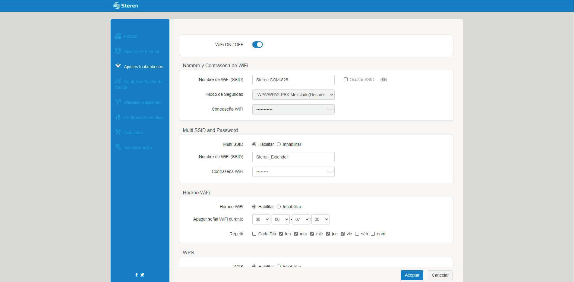 - You will be logged in to the Steren router settings.