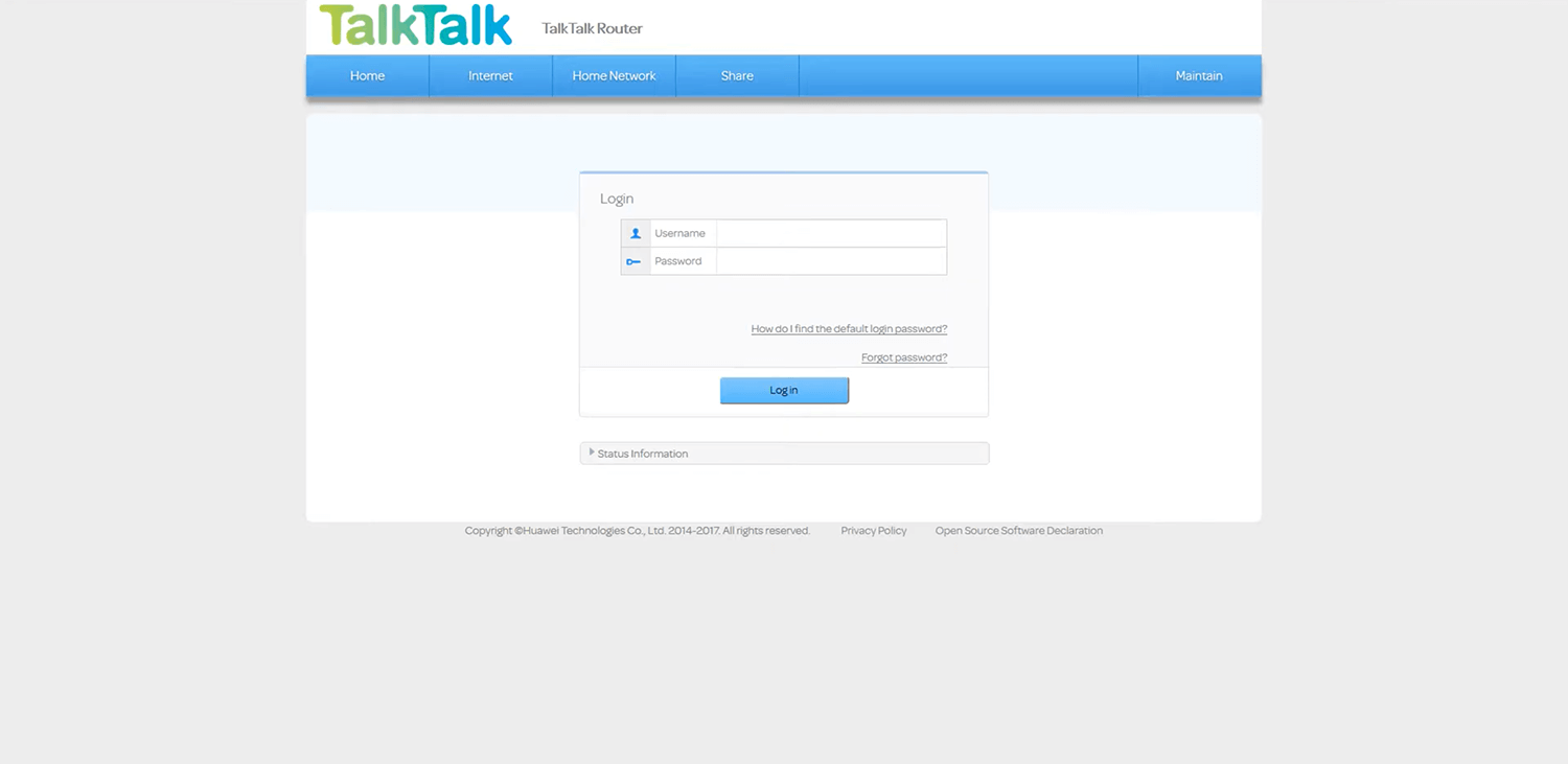 How to login to TalkTalk router?