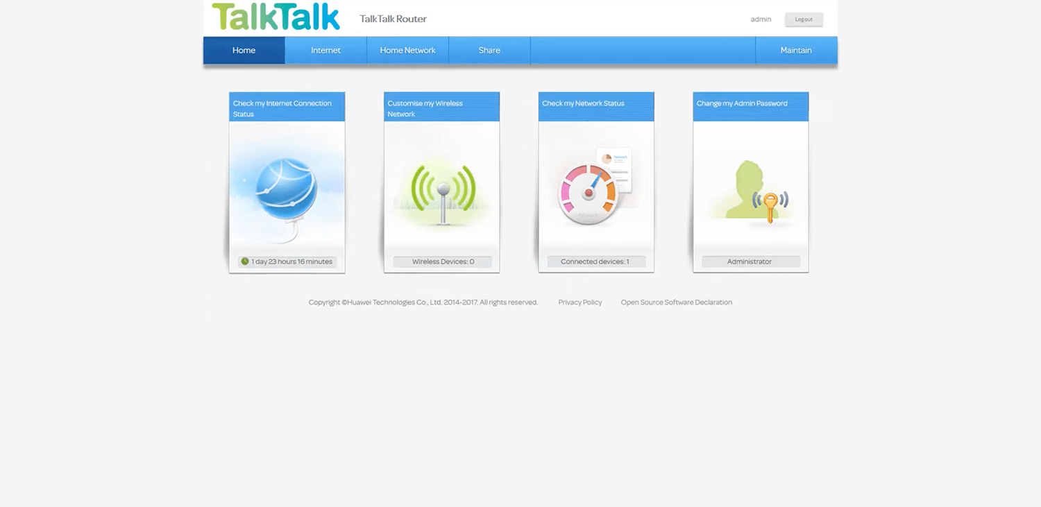 - You will be logged in to TalkTalk router settings.
