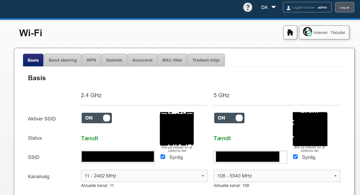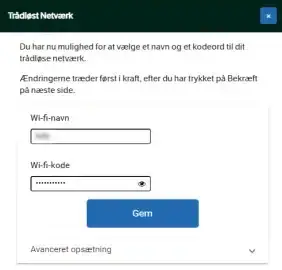- Enter the Wi-Fi Password in the Adgangskode field.