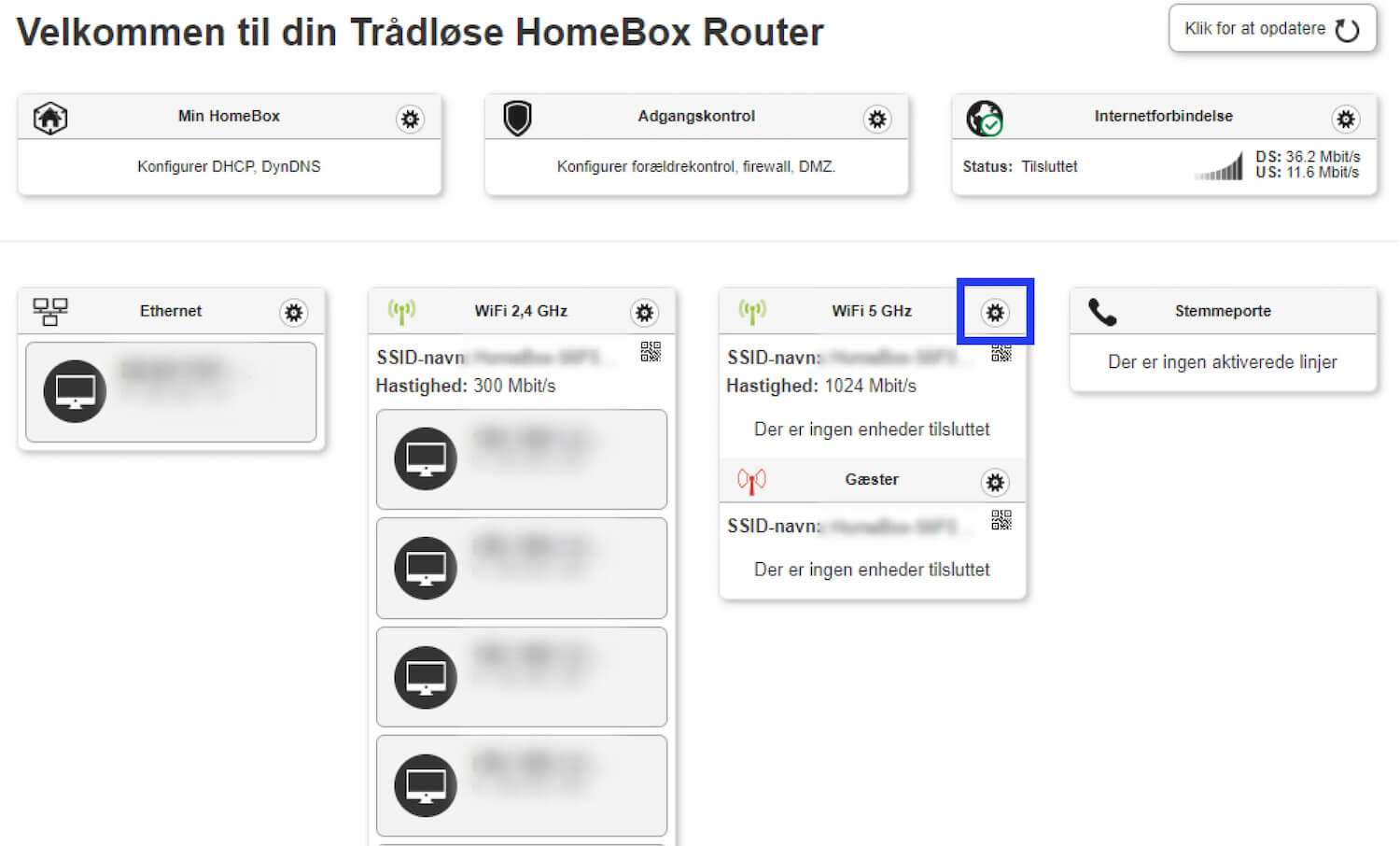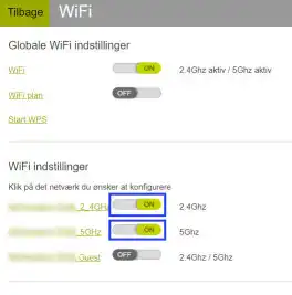 - Click on the gear icon next to WiFi 5 GHz or WiFi 2,4 GHz.