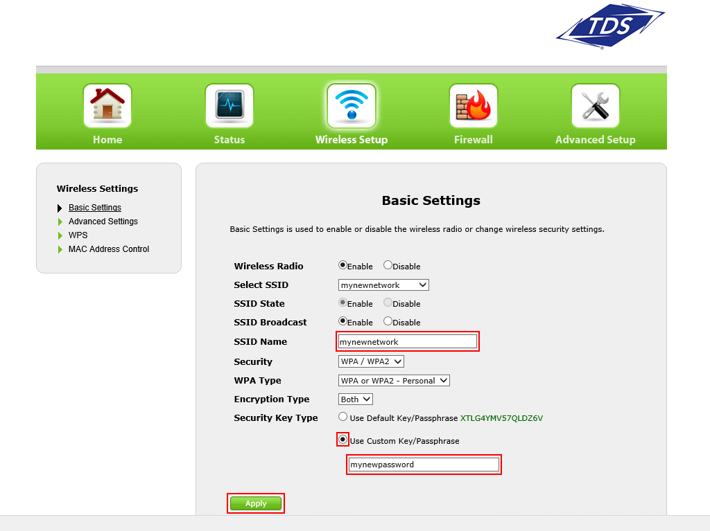 - Select Wireless Setup > Basic Settings.