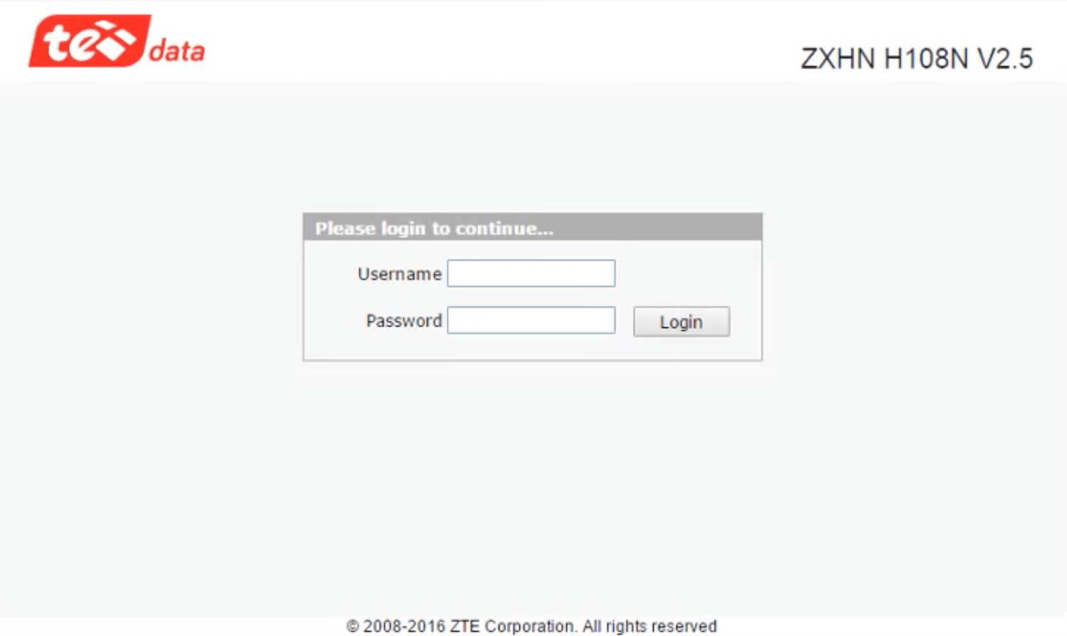 Note: The default Router Username and Password will be printed on a sticker on the back of your router.