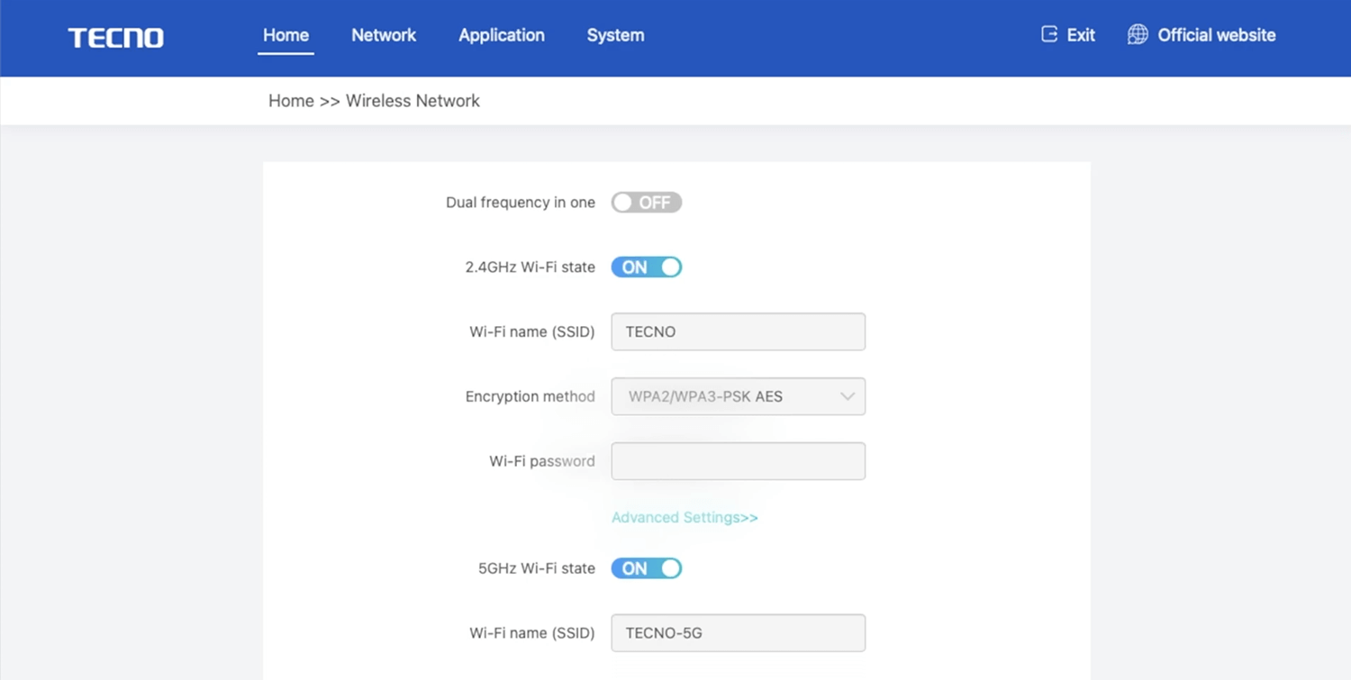 - You will be logged in to the TECNO router settings.