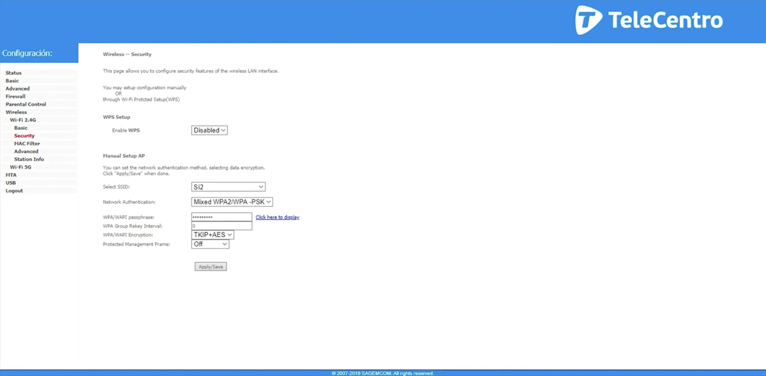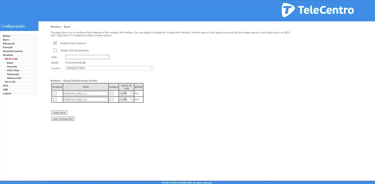 - You will be logged in to the Telecentro router settings.