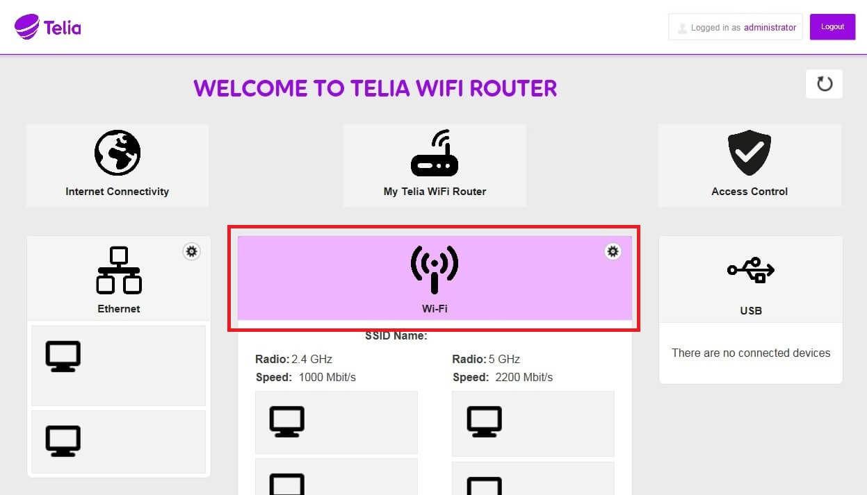 - You will be logged in to the Telia router settings.