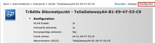 - Select Konfigurera in the top menu bar.