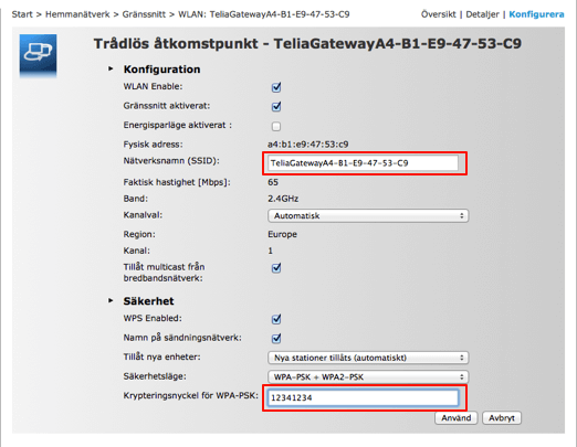 - Select WLAN: TeliaGateway (The network name of your Wi-Fi).